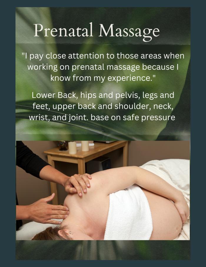 Prenatal massage is conducted on a massage table, with a large pillow strategically positioned under your belly and between your knees while in a side-lying position. The Swedish massage technique, featuring long strokes with light to medium pressure, is applied. No pressure that could pose a risk is administered during prenatal massage. It is recommended to wait until after the first trimester for your safety before receiving a massage.