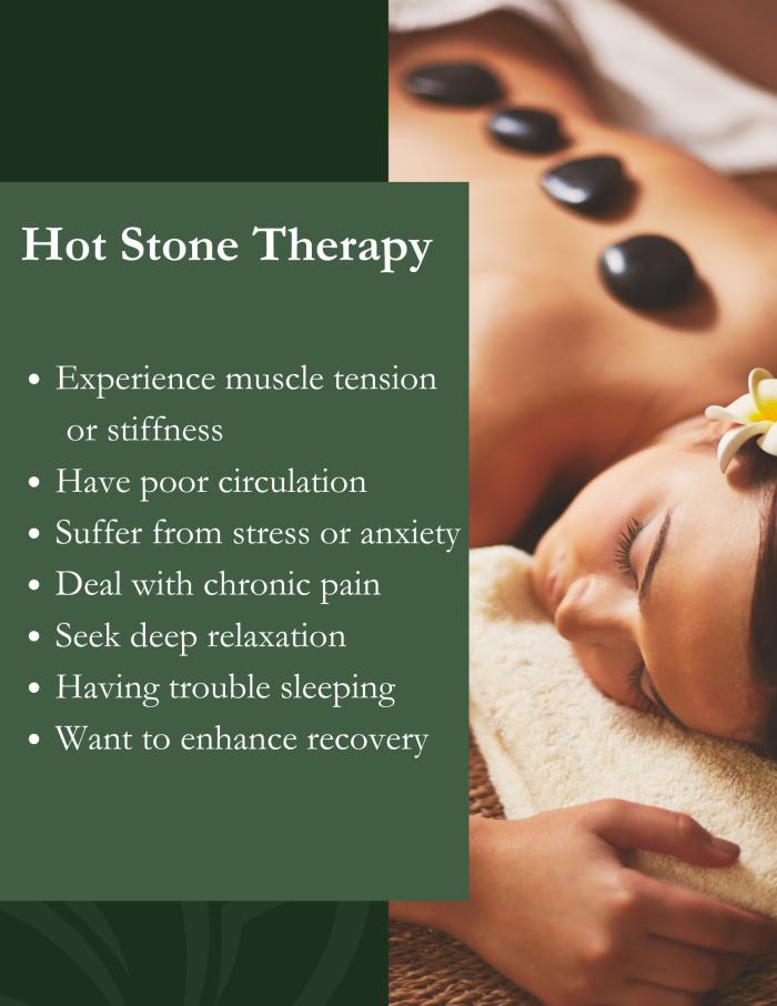 Indulge in the soothing warmth of a hot stone massage—where smooth, heated stones melt away tension, improve circulation, and leave you feeling deeply relaxed and rejuvenated.