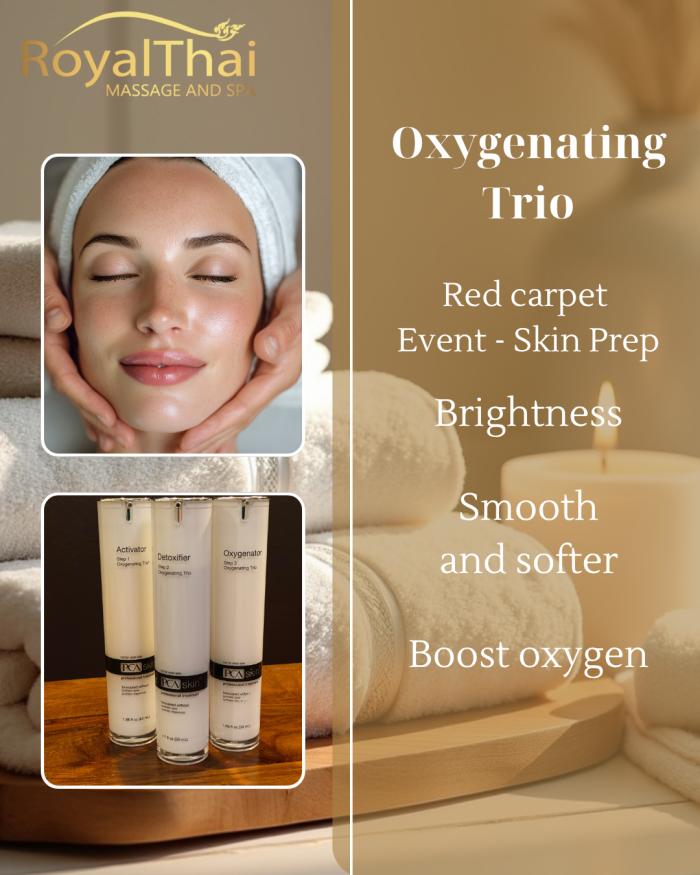 The Red Carpet Oxygenating Facial, also known as the Oxygenating Trio, is a rejuvenating 3-step treatment that transforms dull, tired, or acne-stressed skin into a fresh, luminous complexion. This advanced facial infuses the skin with oxygen while stimulating healthy circulation and renewal from within. Enriched with Pro-B vitamins and oxygen-boosting actives, it works to plump, brighten, and smooth the skin’s texture—minimizing the look of fine lines and leaving your face visibly radiant, hydrated, and event-ready.